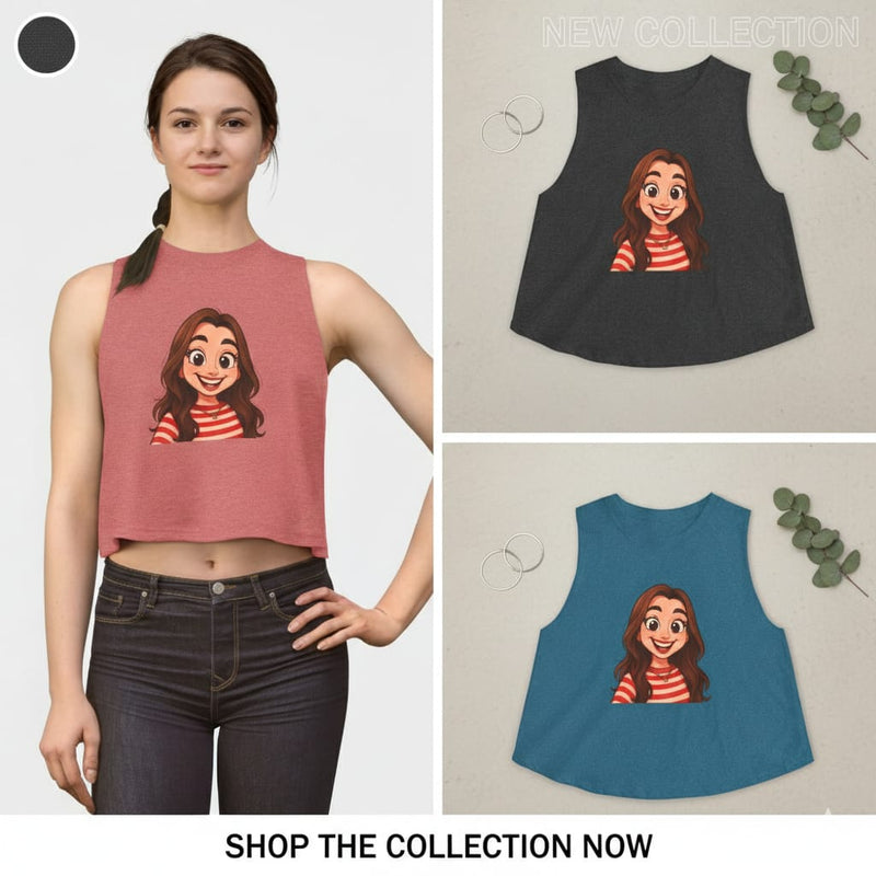 Happy Cartoon Girl Crop Top — Cute Smiley Portrait Graphic Tank